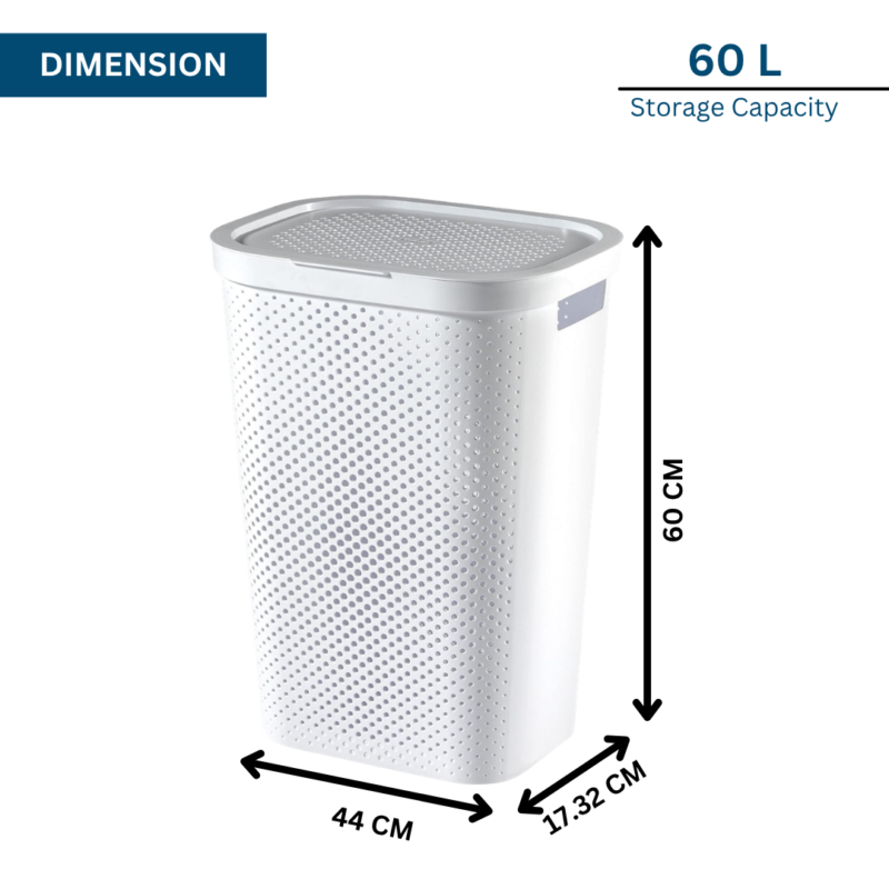 Curver Infinity Dots Laundry Hamper 60L – White Clothes Basket