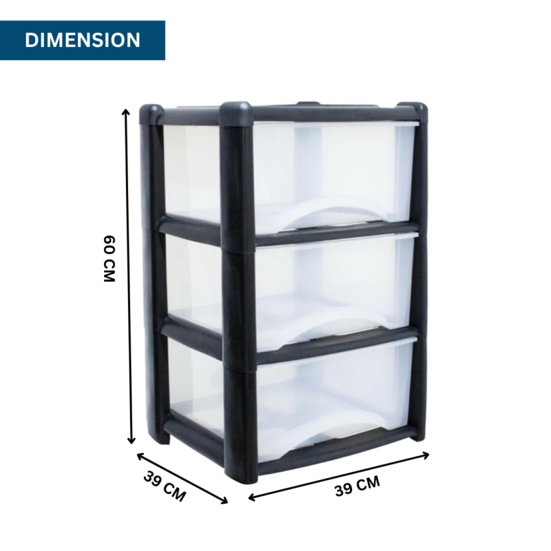 3 Drawer Plastic Storage Unit – Black Frame with Clear Drawers
