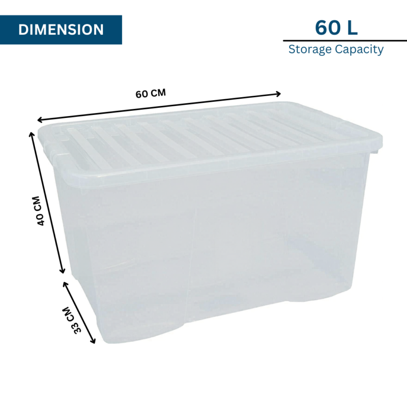 60L Clear Plastic Storage Box with Lid