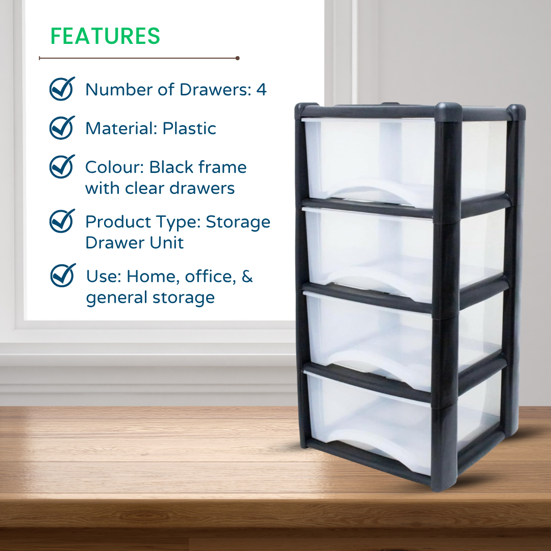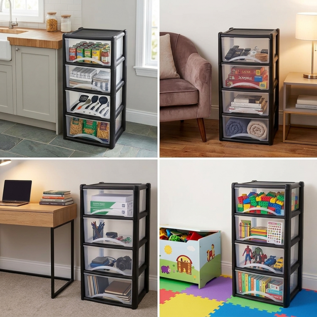 80L Extra Large Clear Plastic Storage Box with Black Lid