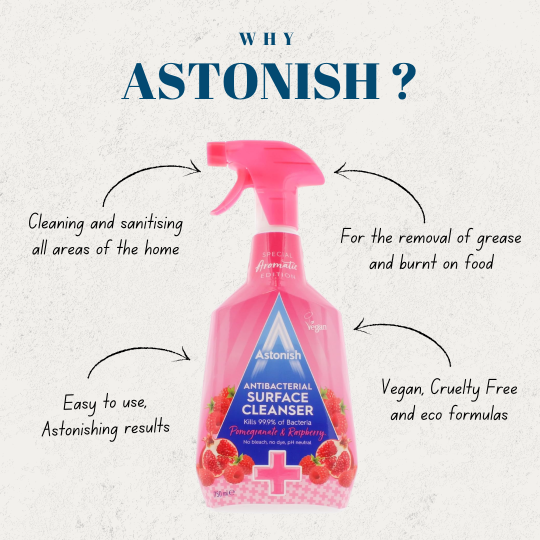 Keep your home hygienically clean with the Astonish Antibacterial Surface Cleanser Spray (Pack of 3). Designed for everyday cleaning, this powerful multi-purpose spray effectively kills 99.9% of bacteria, helping to maintain a safe and germ-free environment across your home.