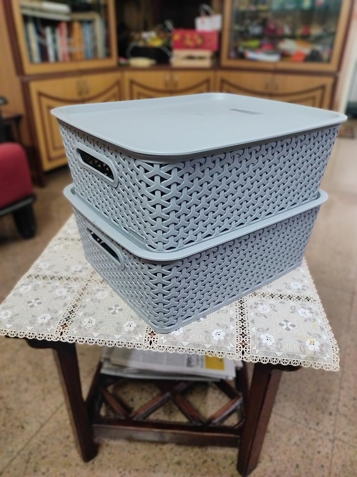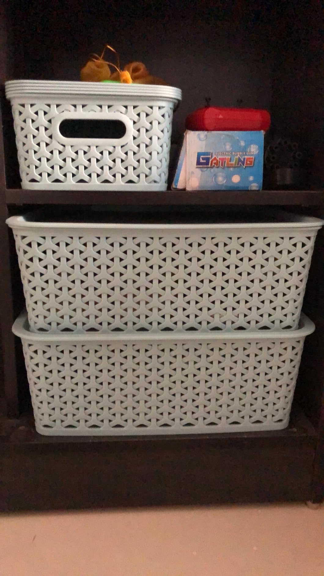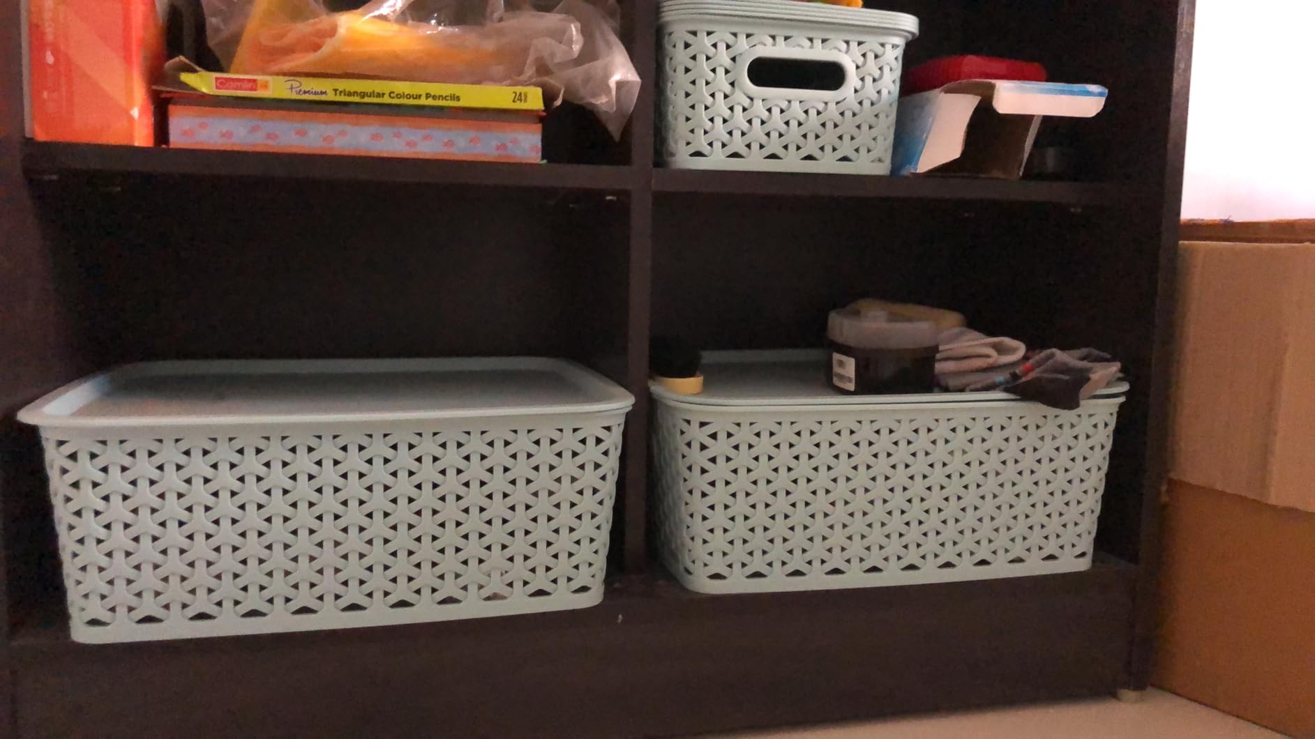 nice basket, not too big but enough for everyday items. fits nicely in cupboards