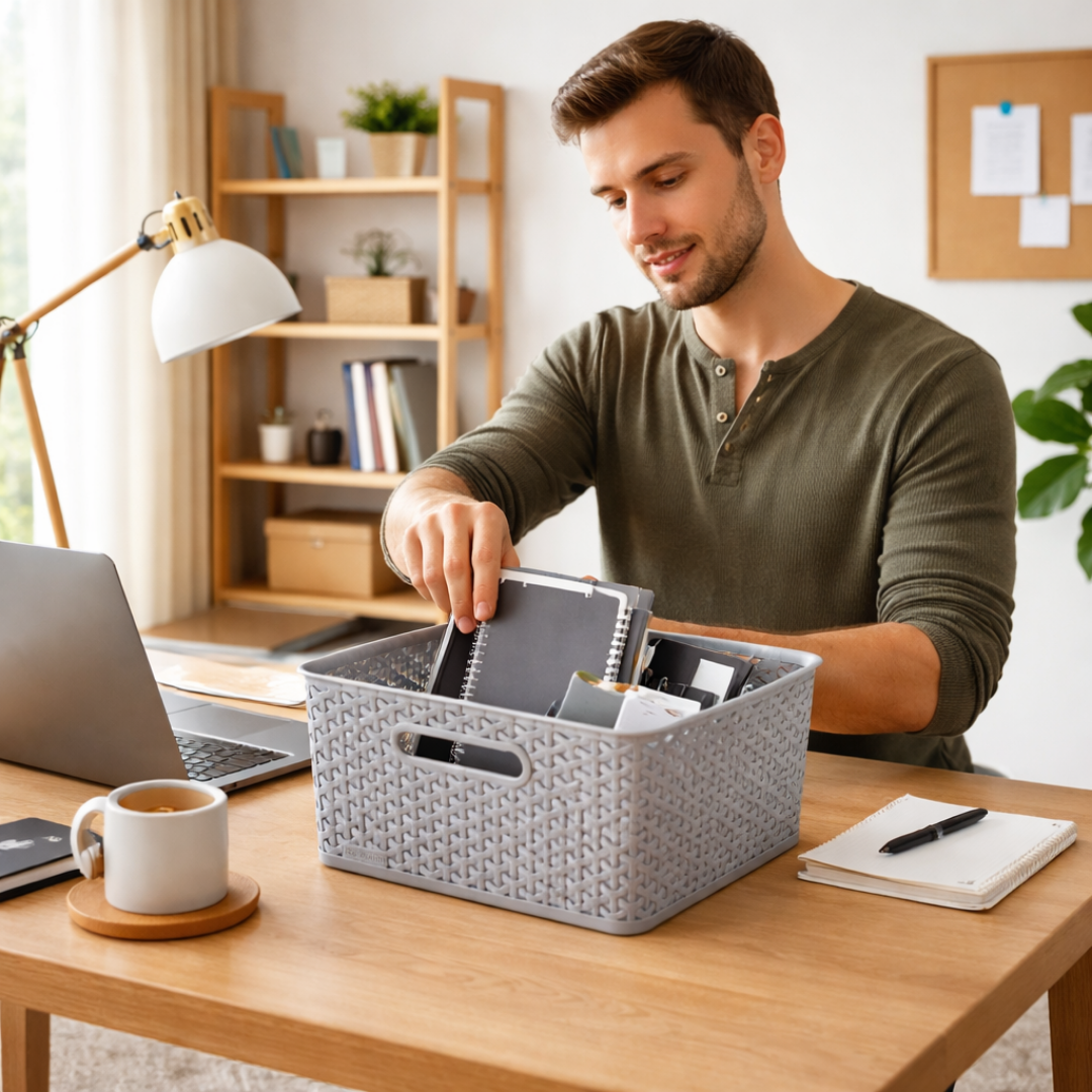 Curver Large Rattan Storage Basket – Grey – 18L