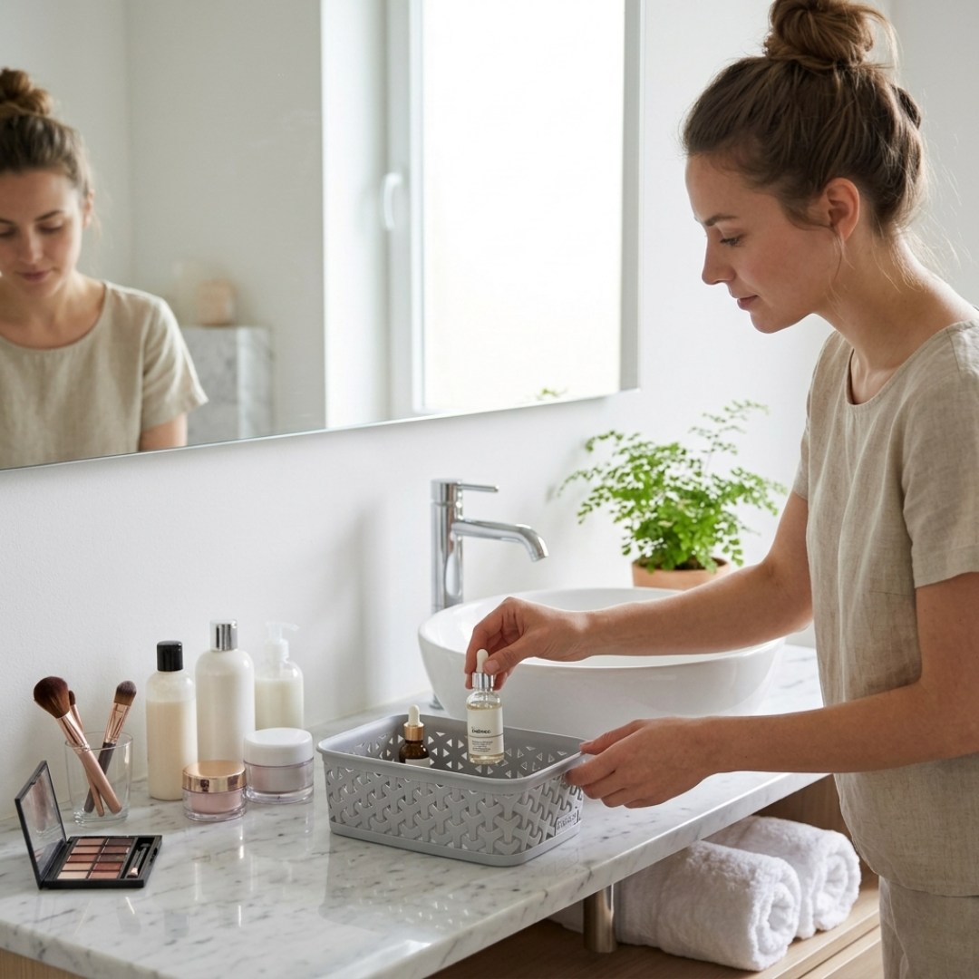 Curver A6 Small Rattan Storage Basket Tray – Grey