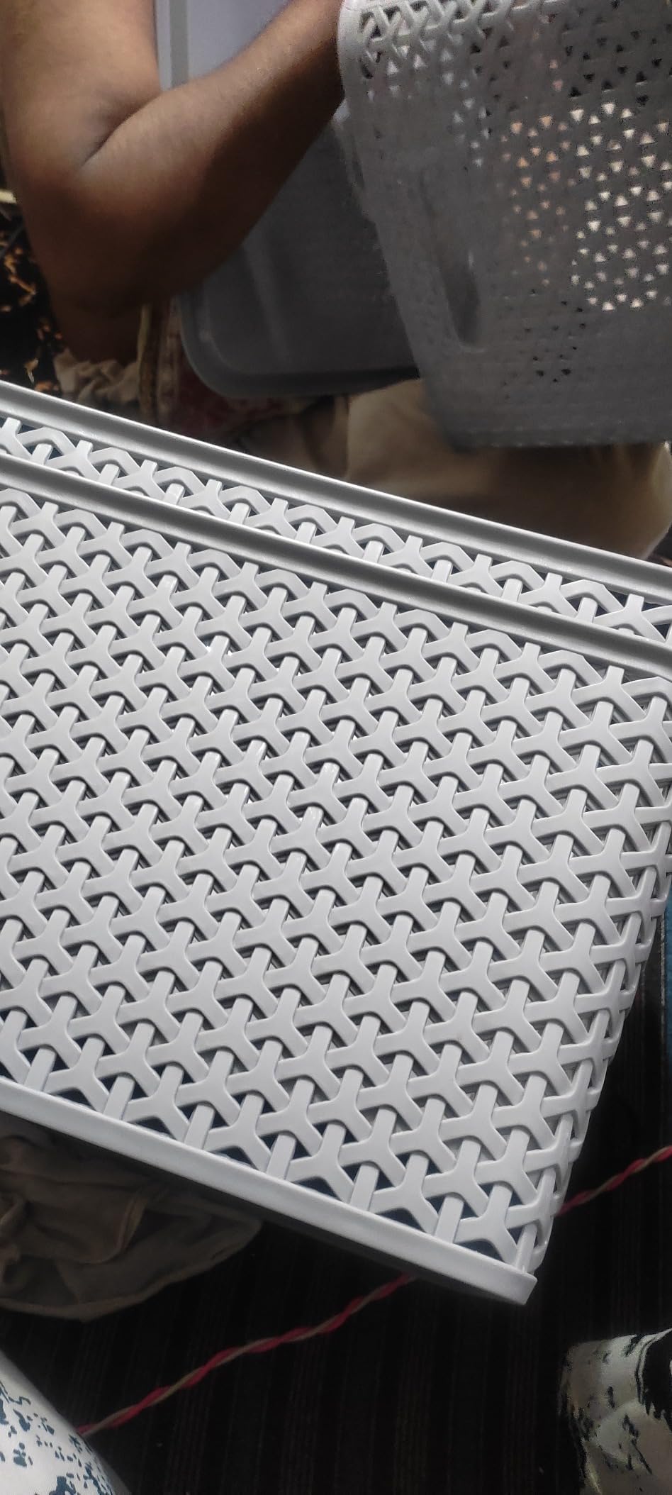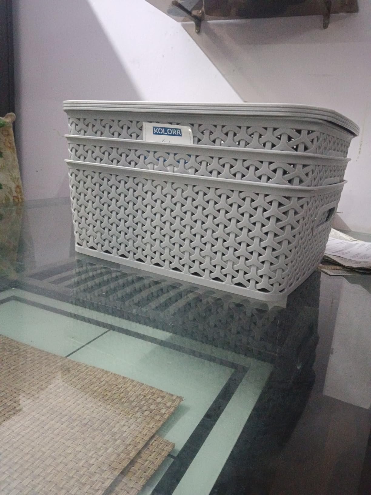 Nice basket, looks quite tidy in the room. happy with how it fits on my shelf.